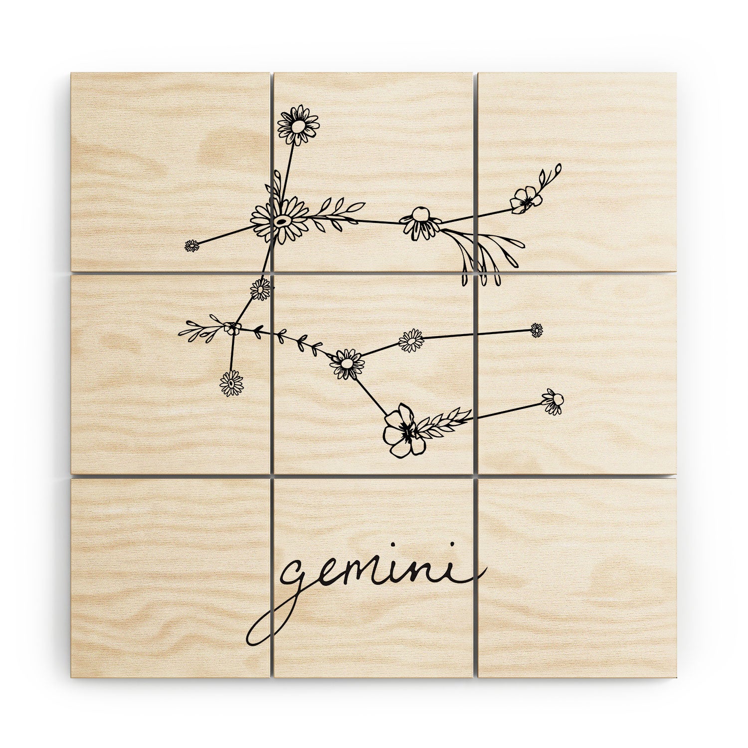 Aterk Gemini Floral Constellation Wood Wall Mural