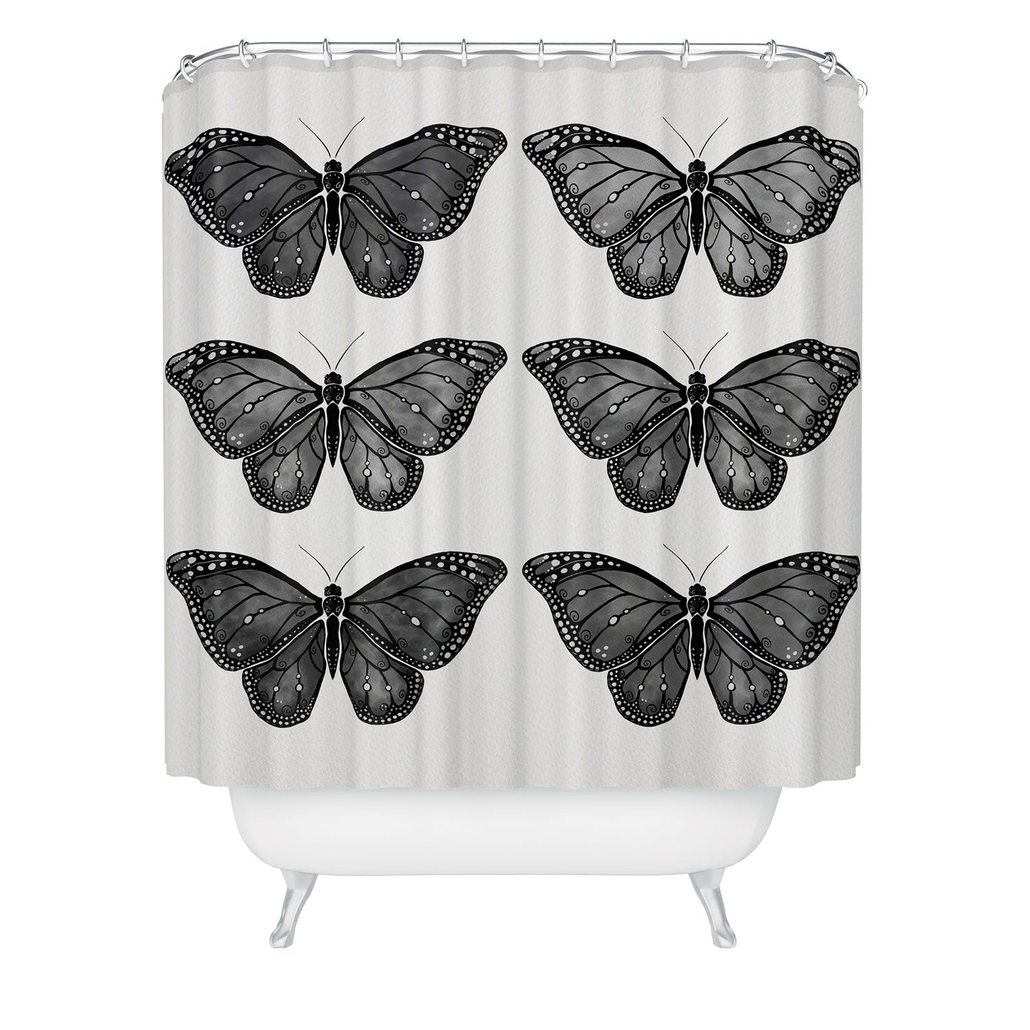 Avenie Butterfly Collection Black Shower Curtain