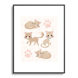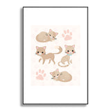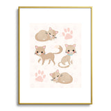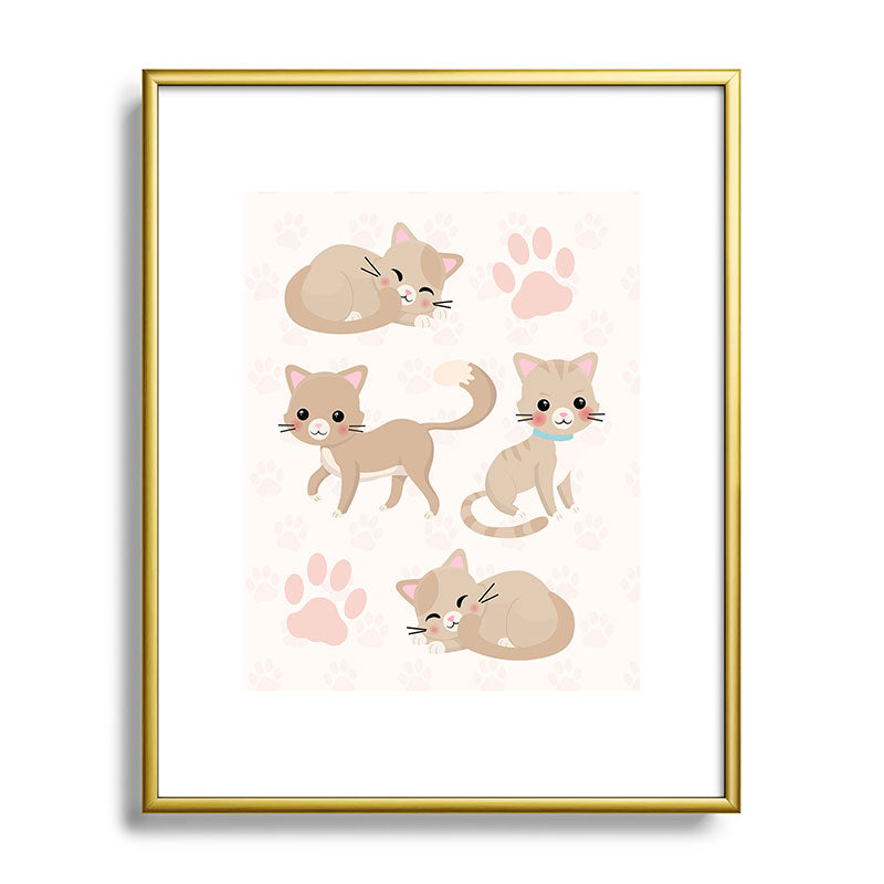 Avenie Cat Pattern Beige Metal Framed Art Print