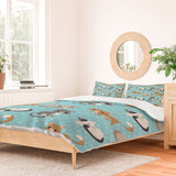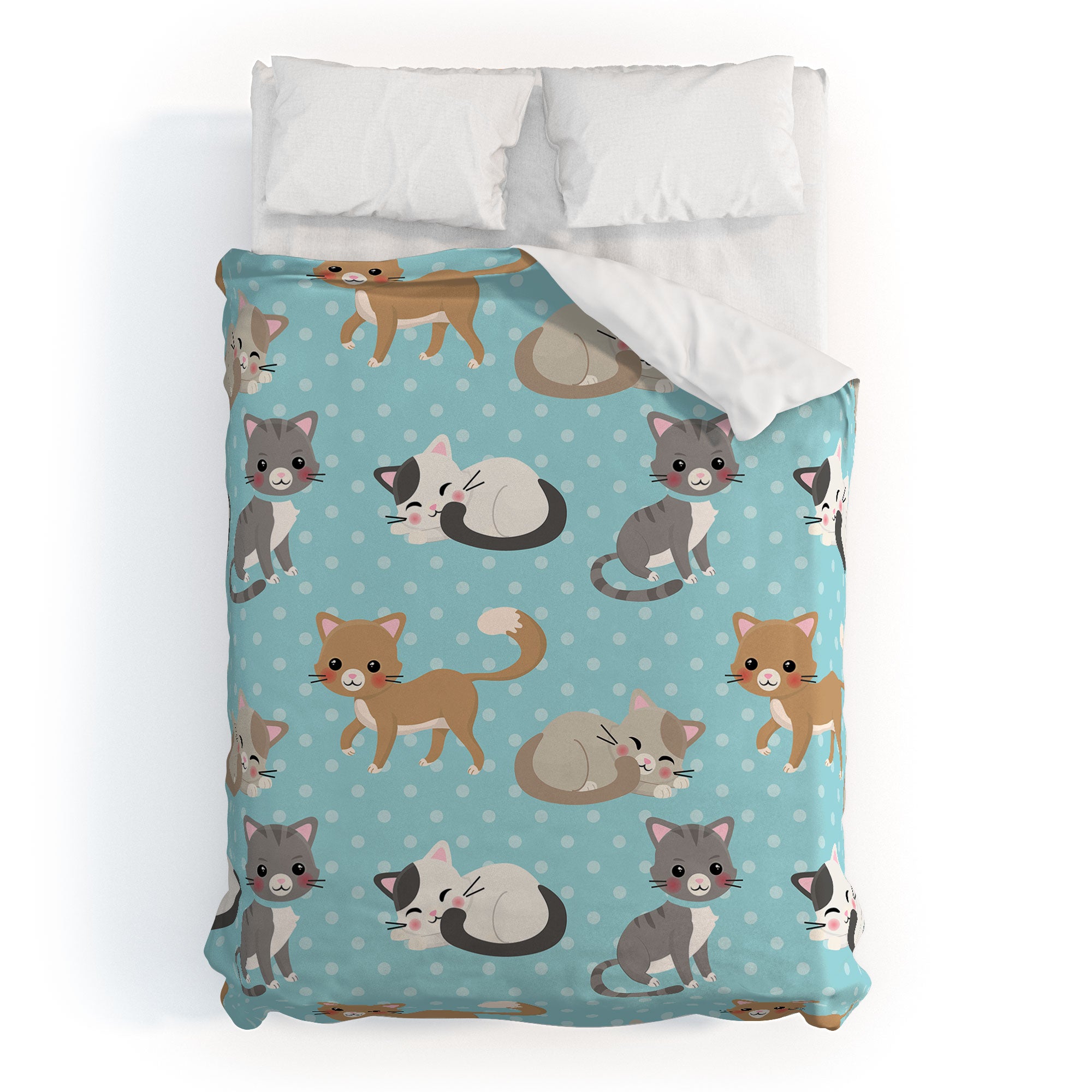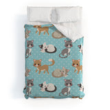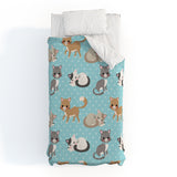 Avenie Cat Pattern Blue Duvet Cover