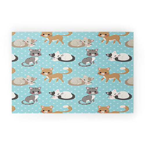 Avenie Cat Pattern Blue Welcome Mat