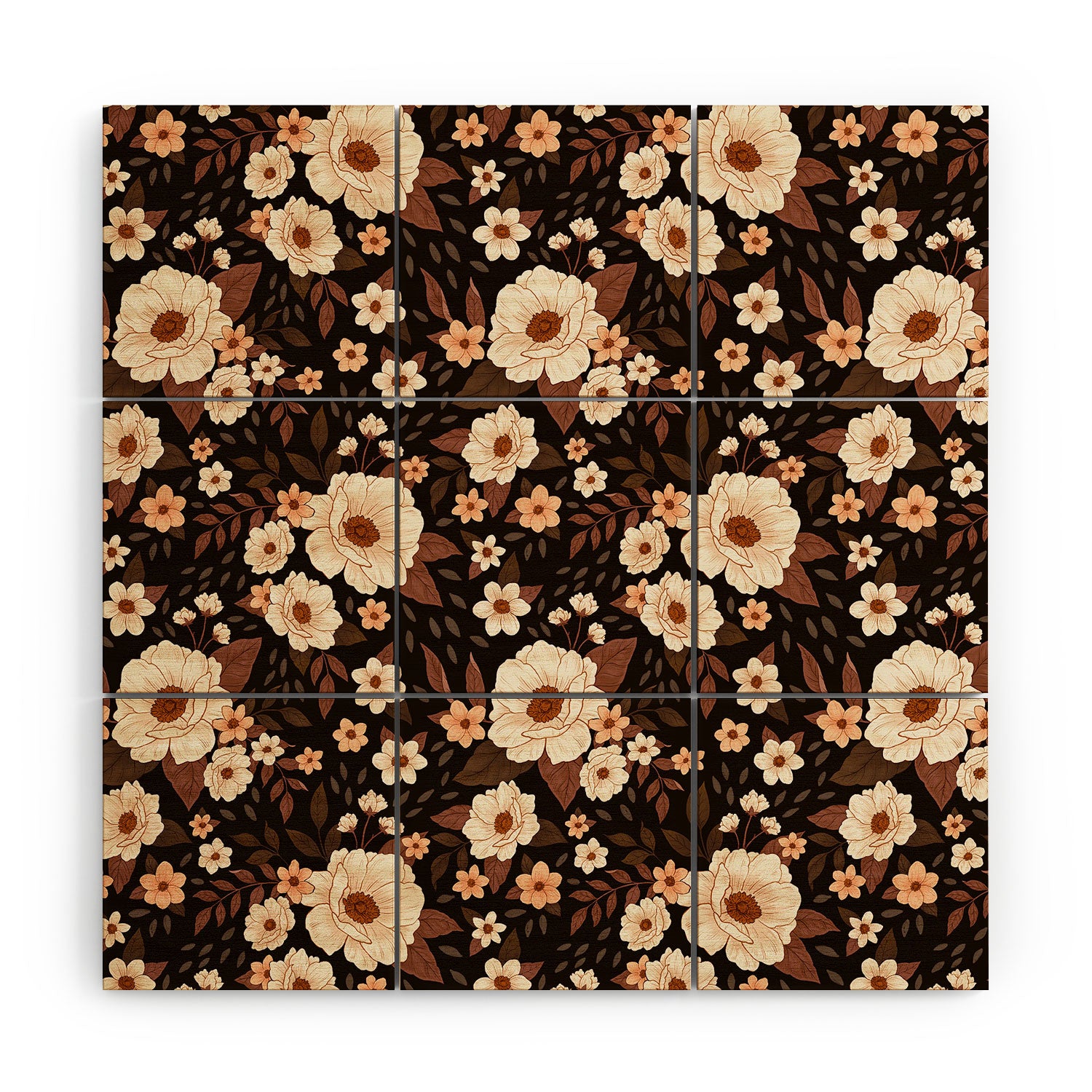Avenie Delicate Deep Autumn Floral Wood Wall Mural