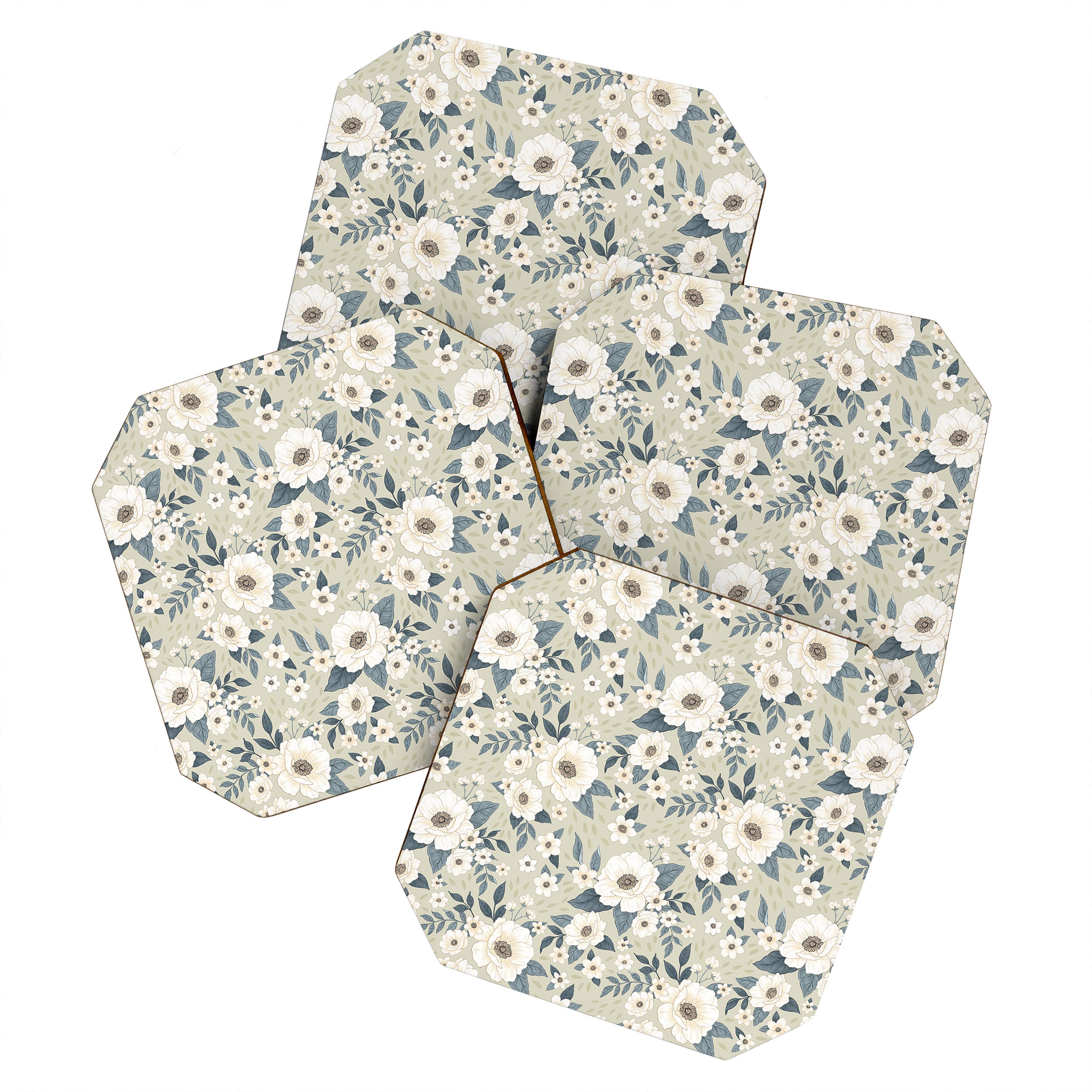 Avenie Delicate Sage Flowers Coaster Set