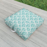 Avenie Hand Drawn Wave Teal Outdoor Floor Cushion