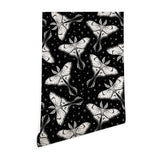 Avenie Luna Moth Black and Cream Wallpaper