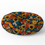 Avenie Sunflower Meadow Mystical Blue Floor Pillow Round