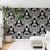 Avenie Unicorn Damask Cream And Black Wall Mural