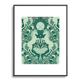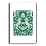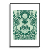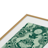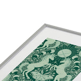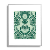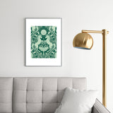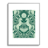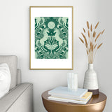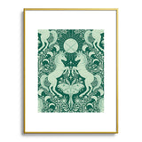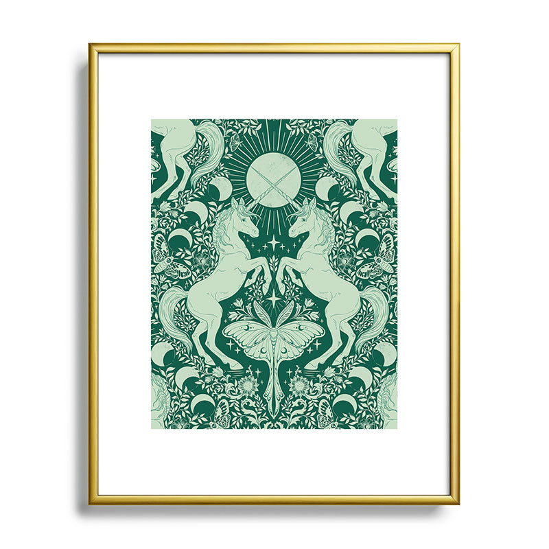 Avenie Unicorn Damask Green Metal Framed Art Print