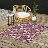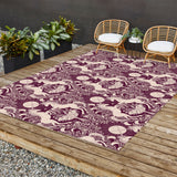 Avenie Unicorn Damask In Berry Red Outdoor Rug