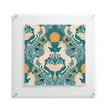 Avenie Unicorn Damask Turquoise Gold Floating Acrylic Print