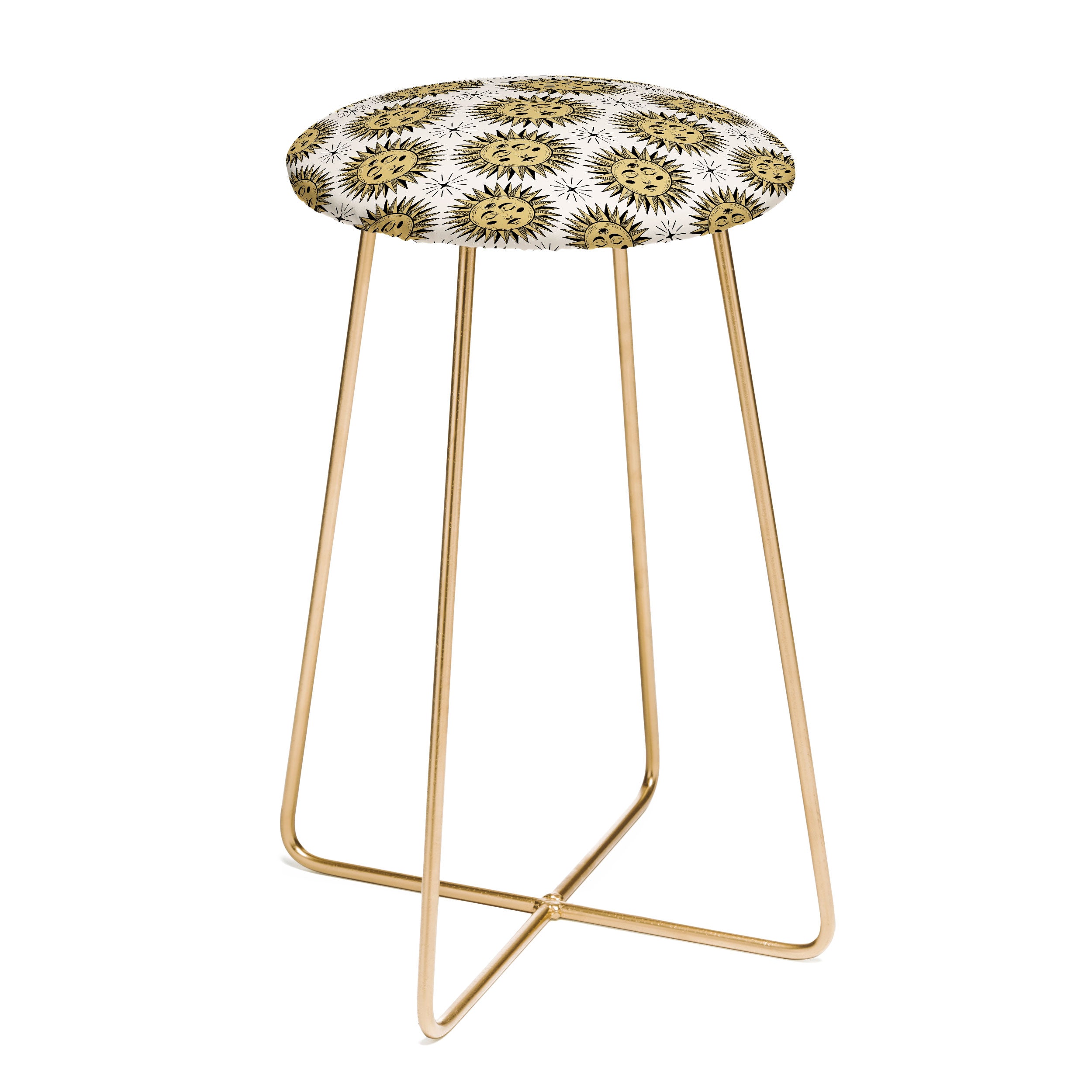 Saddle up, (little) partner. The Deny Designs counter stool uses all the space-conscious, design-forward styling of the bar stool, but with a slightly shorter frame. Sleek, gently curved steel aston legs (available in black or gold) combine with the faux-leather upholstery for a modern yet unassuming stool. Select from our curated array of designs to match whatever your taste may be. And the best part? Every purchase pays the artist who designed it—supporting creativity worldwide.