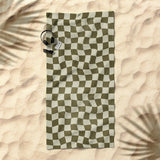 Avenie Warped Checkerboard Olive Beach Towel