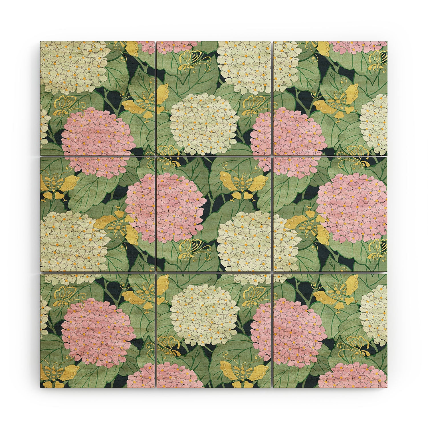 Belle13 Hydrangea And Butterflies Wood Wall Mural