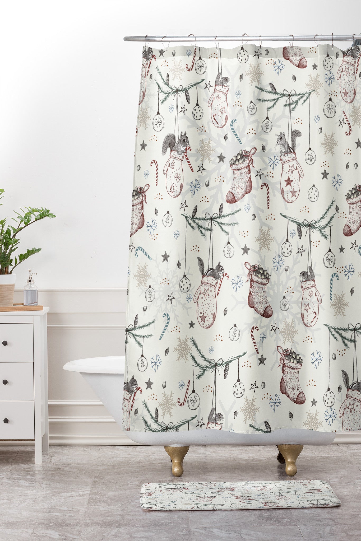 Belle13 Squirrel Heavenly Christmas Shower Curtain And Mat