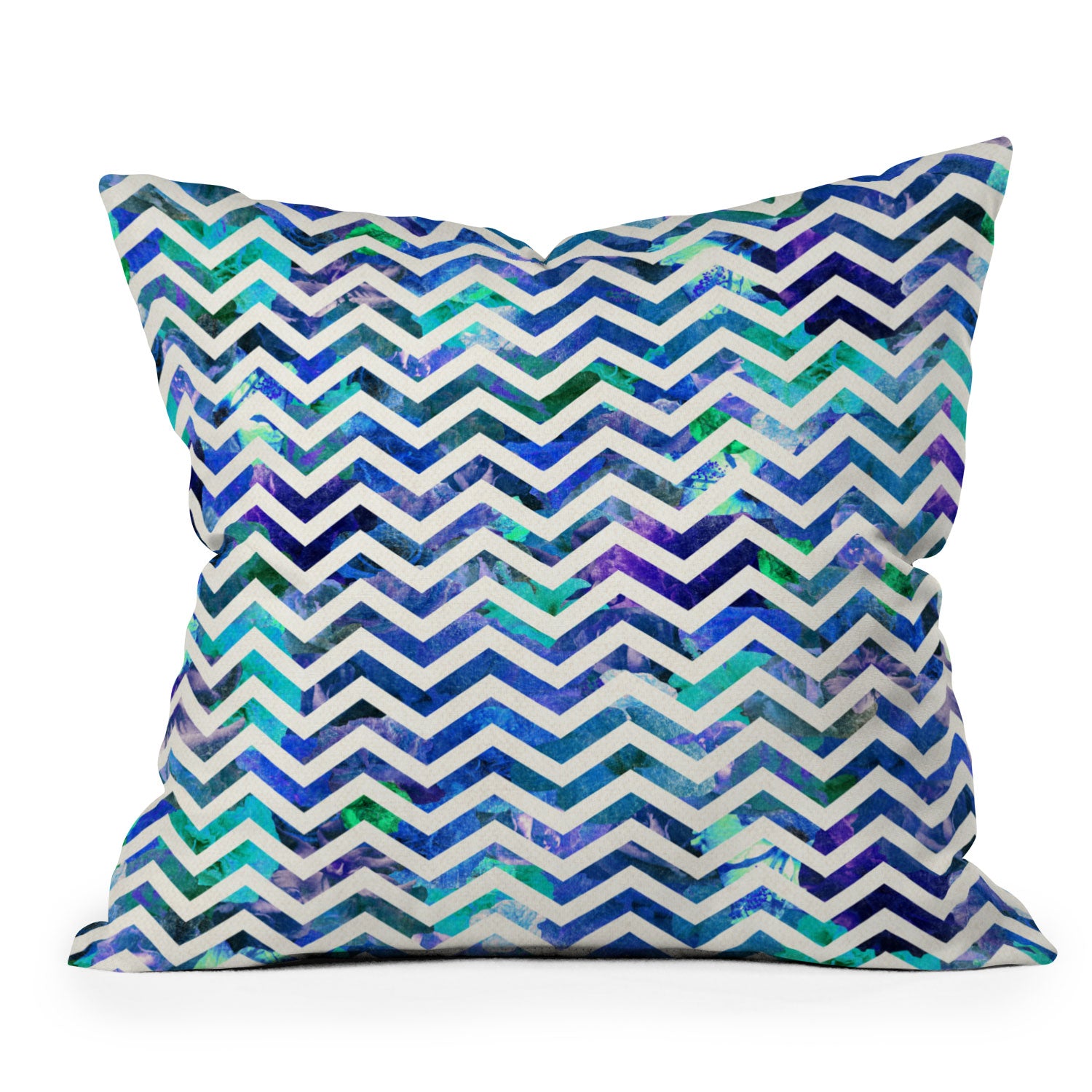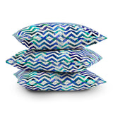 Bianca Green Floral Chevron Aqua Outdoor Throw Pillow