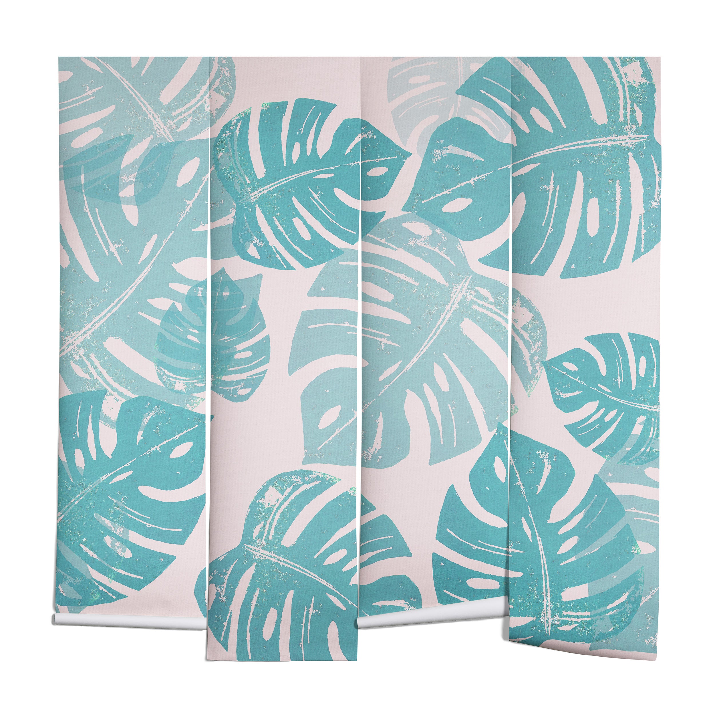 Bianca Green Linocut Monstera Pastel Wall Mural