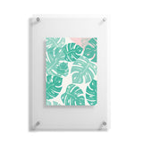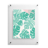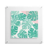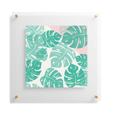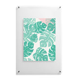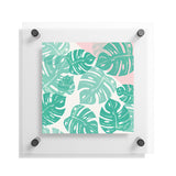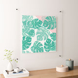 Bianca Green Linocut Monstera Rosy Floating Acrylic Print