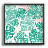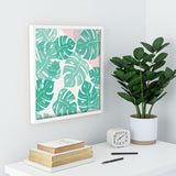 Bianca Green Linocut Monstera Rosy Recessed Framing Square