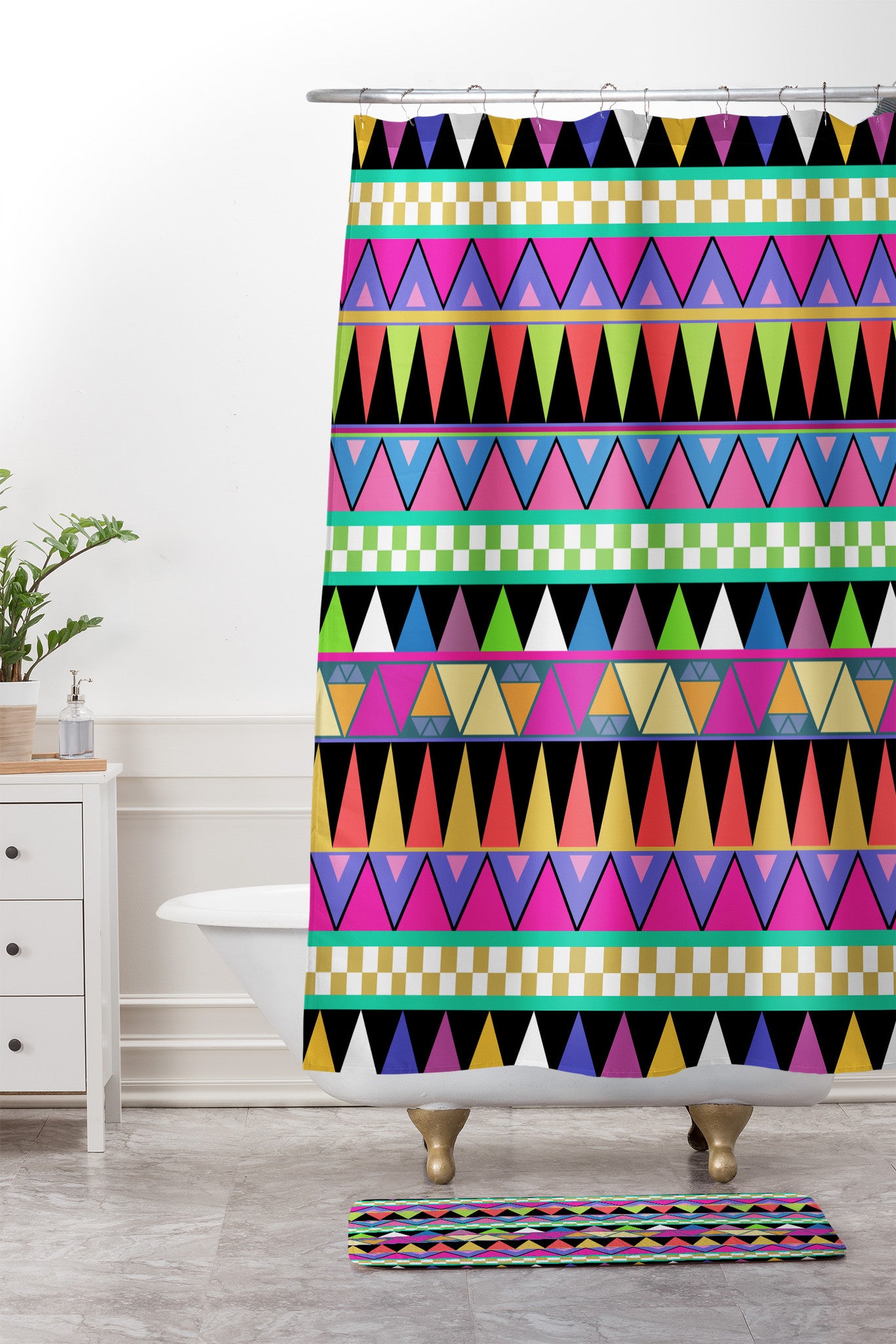 Bianca Green Zigzag Shower Curtain And Mat