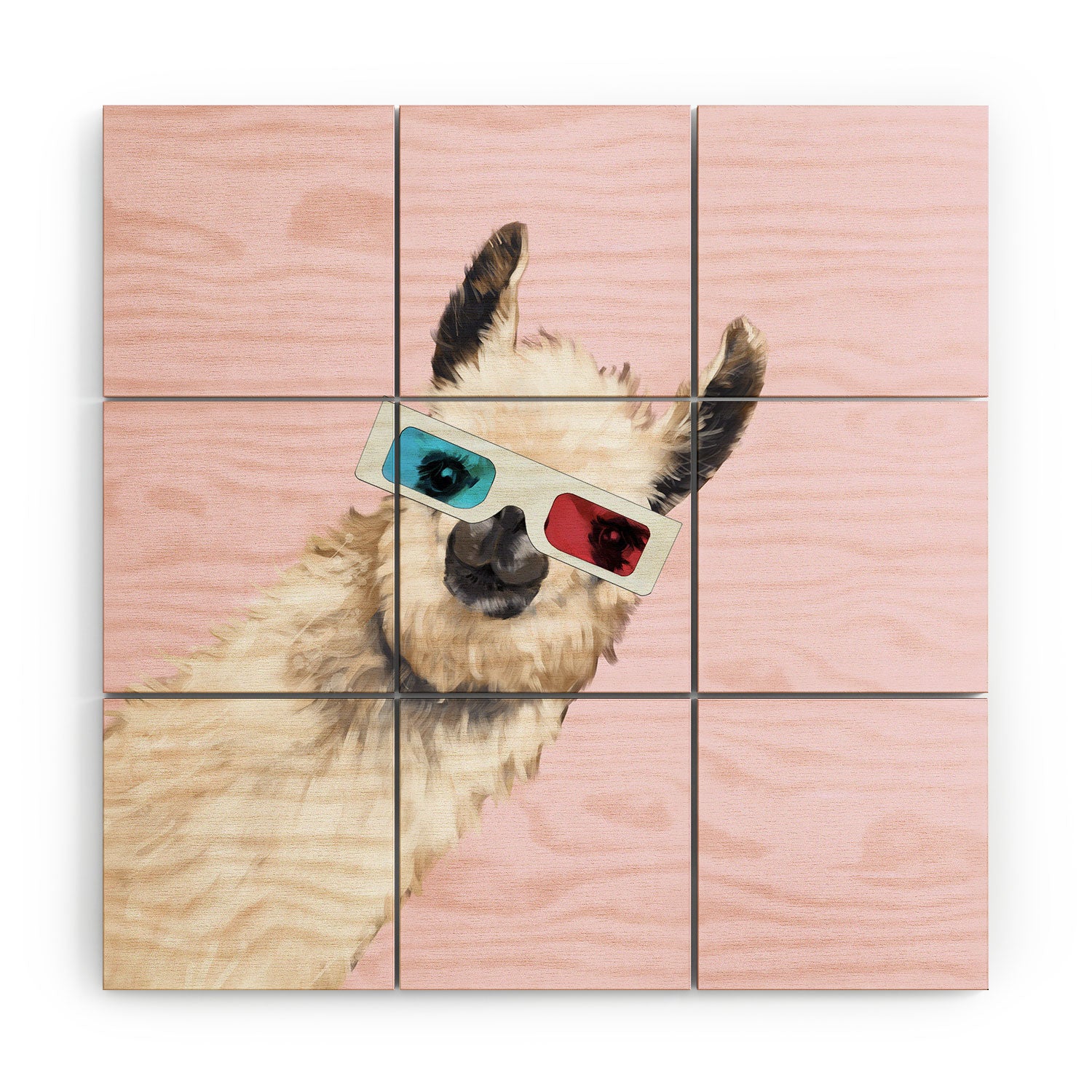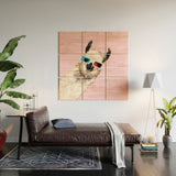 Big Nose Work 3D Glasses Llama Wood Wall Mural
