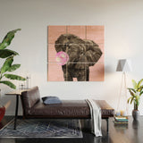 Big Nose Work Baby Elephant Blowing Bubble Wood Wall Mural