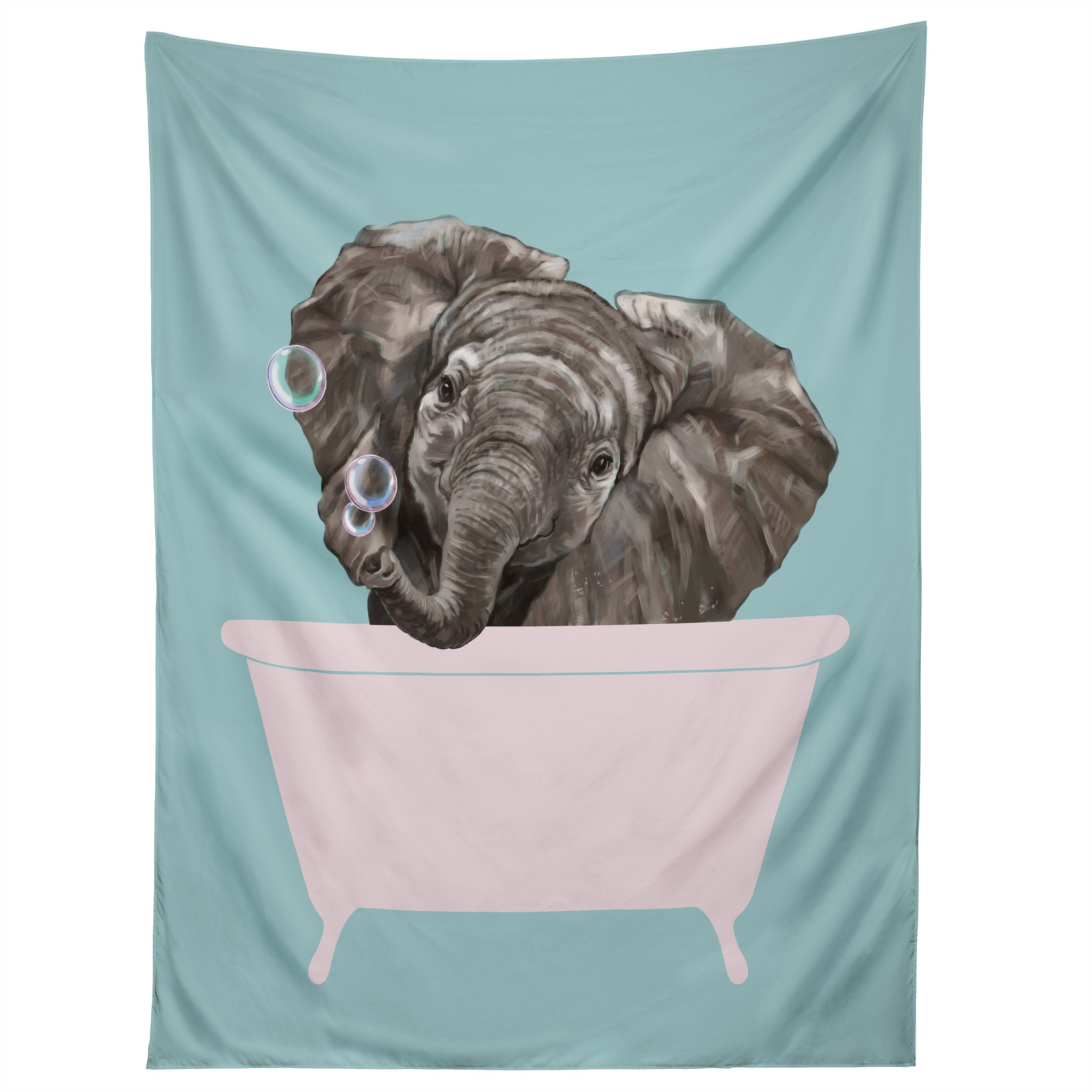 Big Nose Work Baby Elephant in Bathtub Tapestry