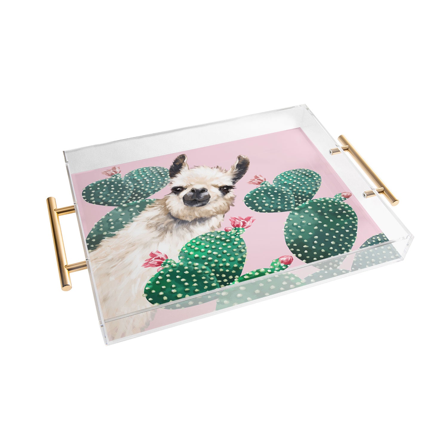 Big Nose Work Llama and Cactus Pink Acrylic Tray
