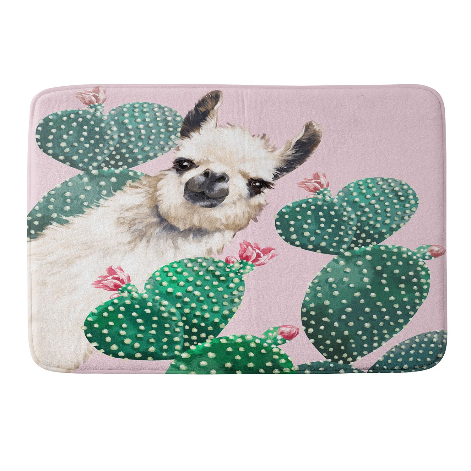 Big Nose Work Llama and Cactus Pink Memory Foam Bath Mat