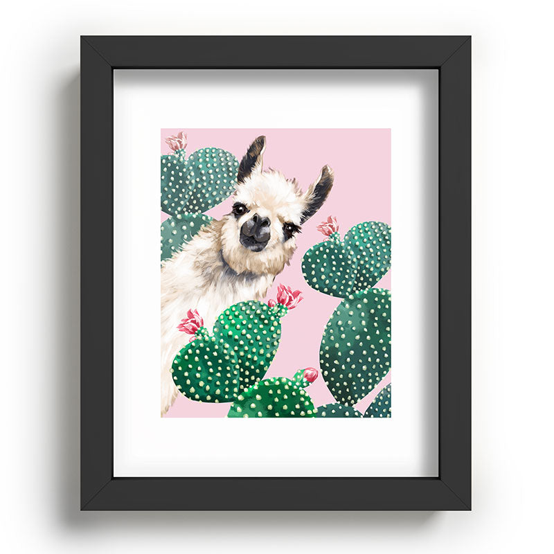 Big Nose Work Llama and Cactus Pink Recessed Framing Rectangle