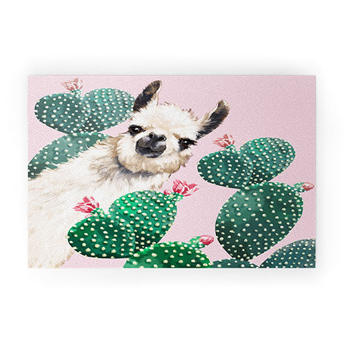 Big Nose Work Llama and Cactus Pink Welcome Mat