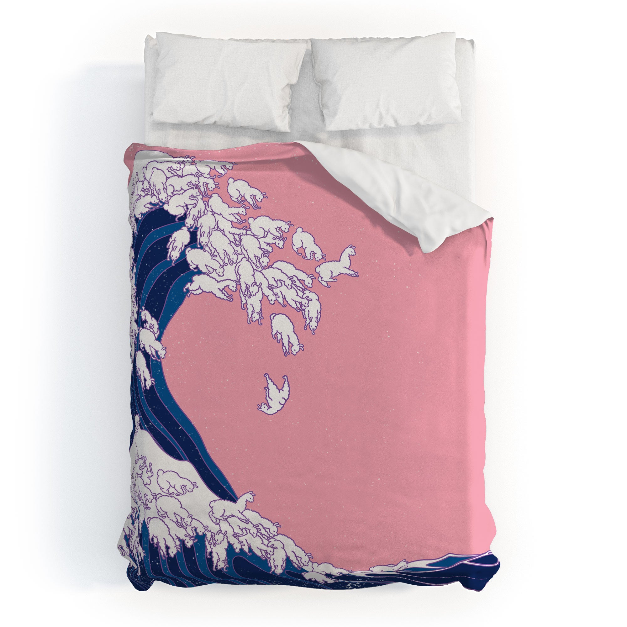 Big Nose Work Llama Waves in Pink Duvet Cover