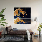 Big Nose Work Shiba Inu Great Wave at Night Wood Wall Mural