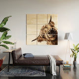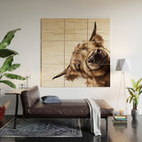 Big Nose Work Sneaky Highland Cow Wood Wall Mural