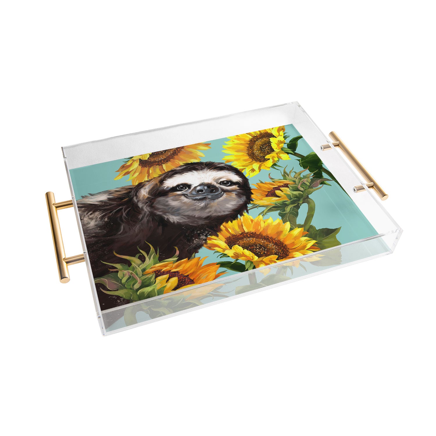 Big Nose Work Sneaky Sloth with Sunflowers Acrylic Tray