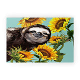Big Nose Work Sneaky Sloth with Sunflowers Welcome Mat