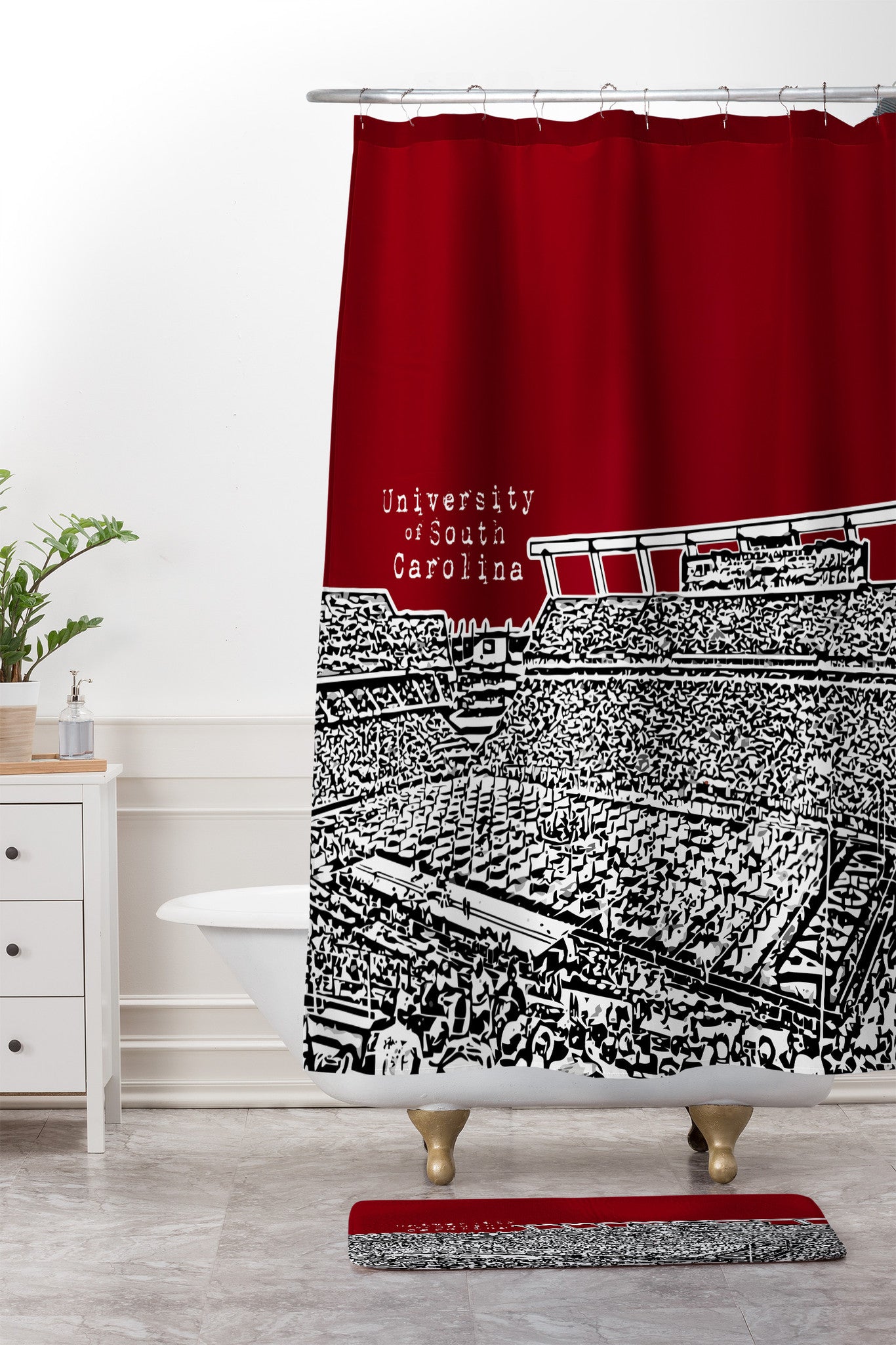 Bird Ave University Of South Carolina Dark Red Shower Curtain And Mat