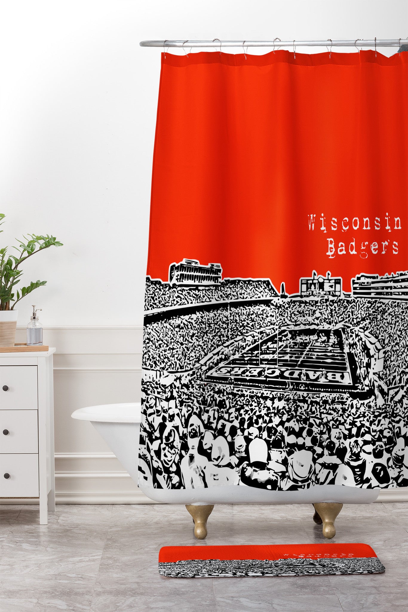 Bird Ave Wisconsin Badgers Red Shower Curtain And Mat