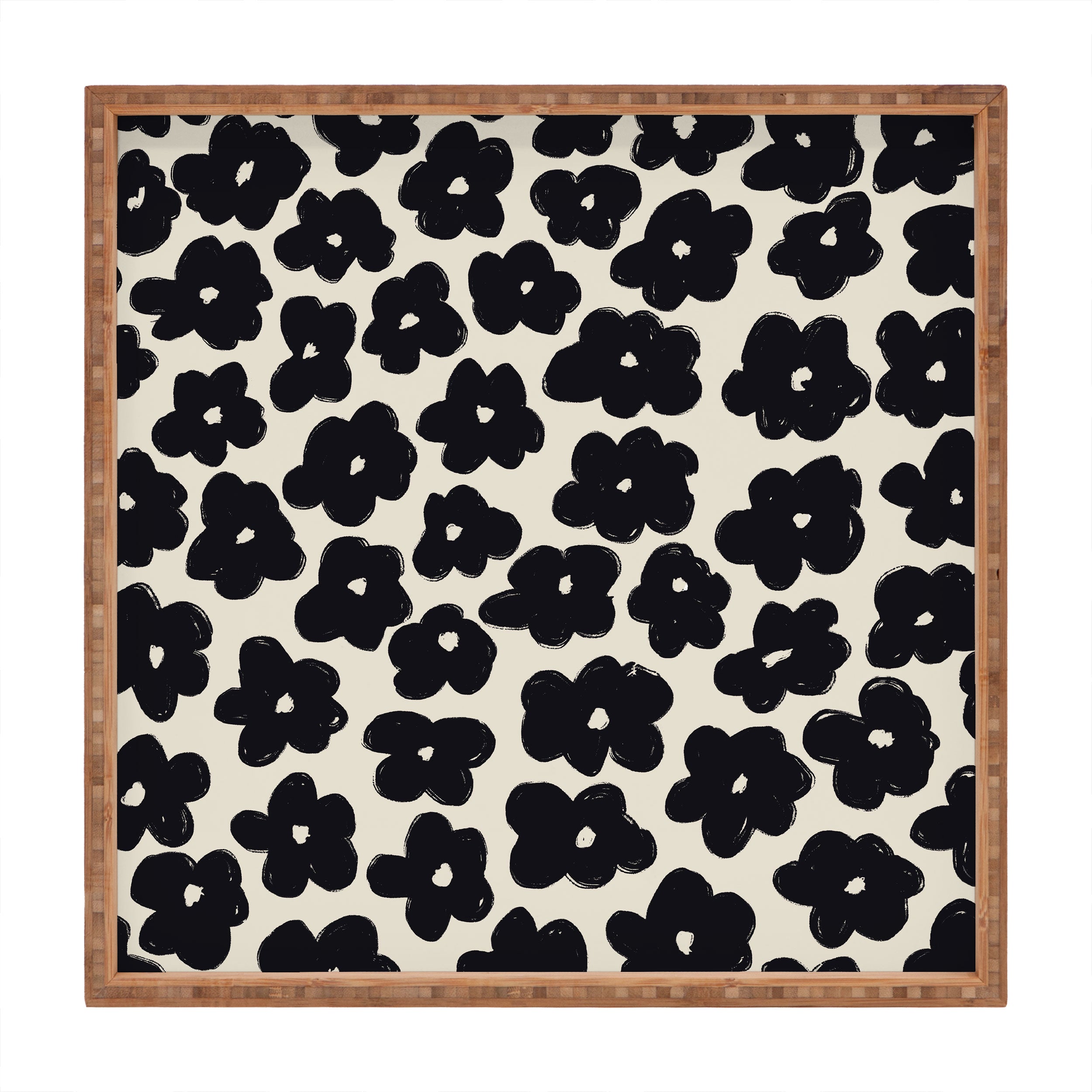 Bohomadic.Studio Black and White Daisy Pattern Square Tray