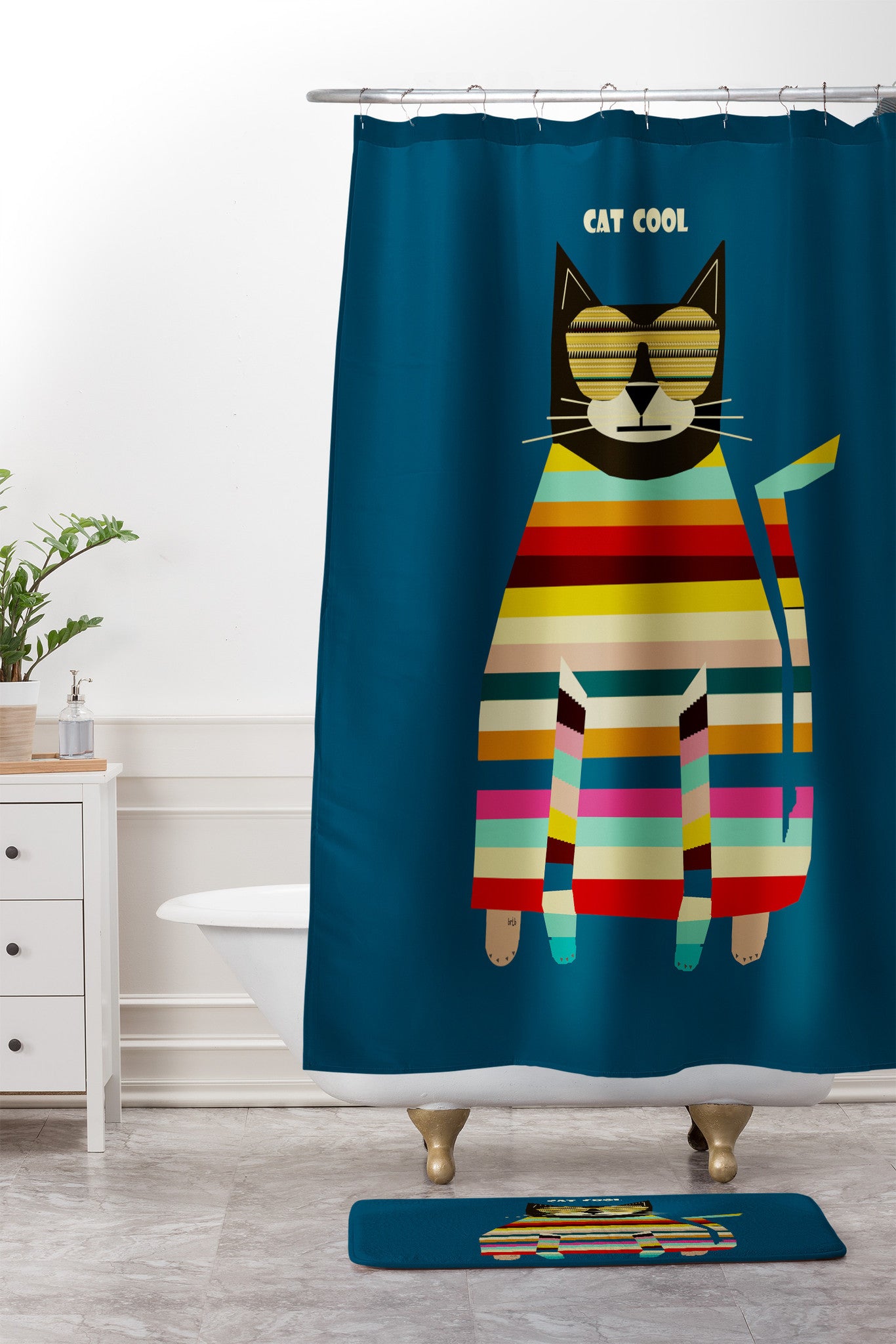 Brian Buckley Cat Cool Shower Curtain And Mat