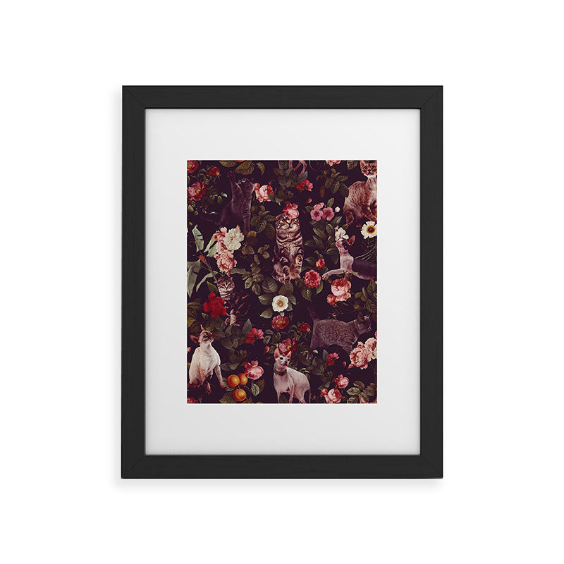 Burcu Korkmazyurek Cat and Floral Pattern Framed Art Print