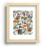Burcu Korkmazyurek Cat and Floral Pattern III Recessed Framing Rectangle