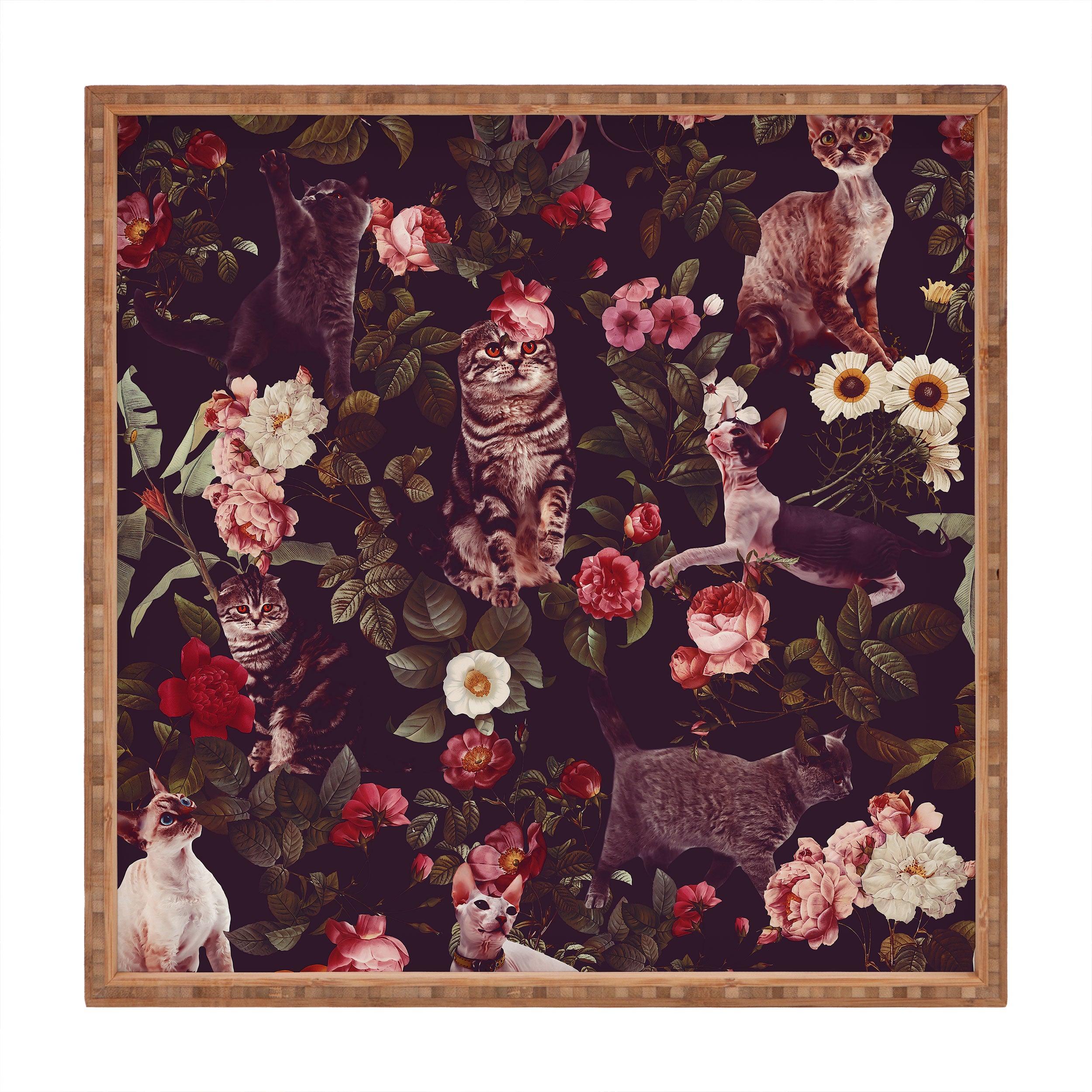 Burcu Korkmazyurek Cat and Floral Pattern Square Tray