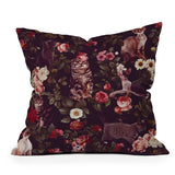 Burcu Korkmazyurek Cat and Floral Pattern Throw Pillow