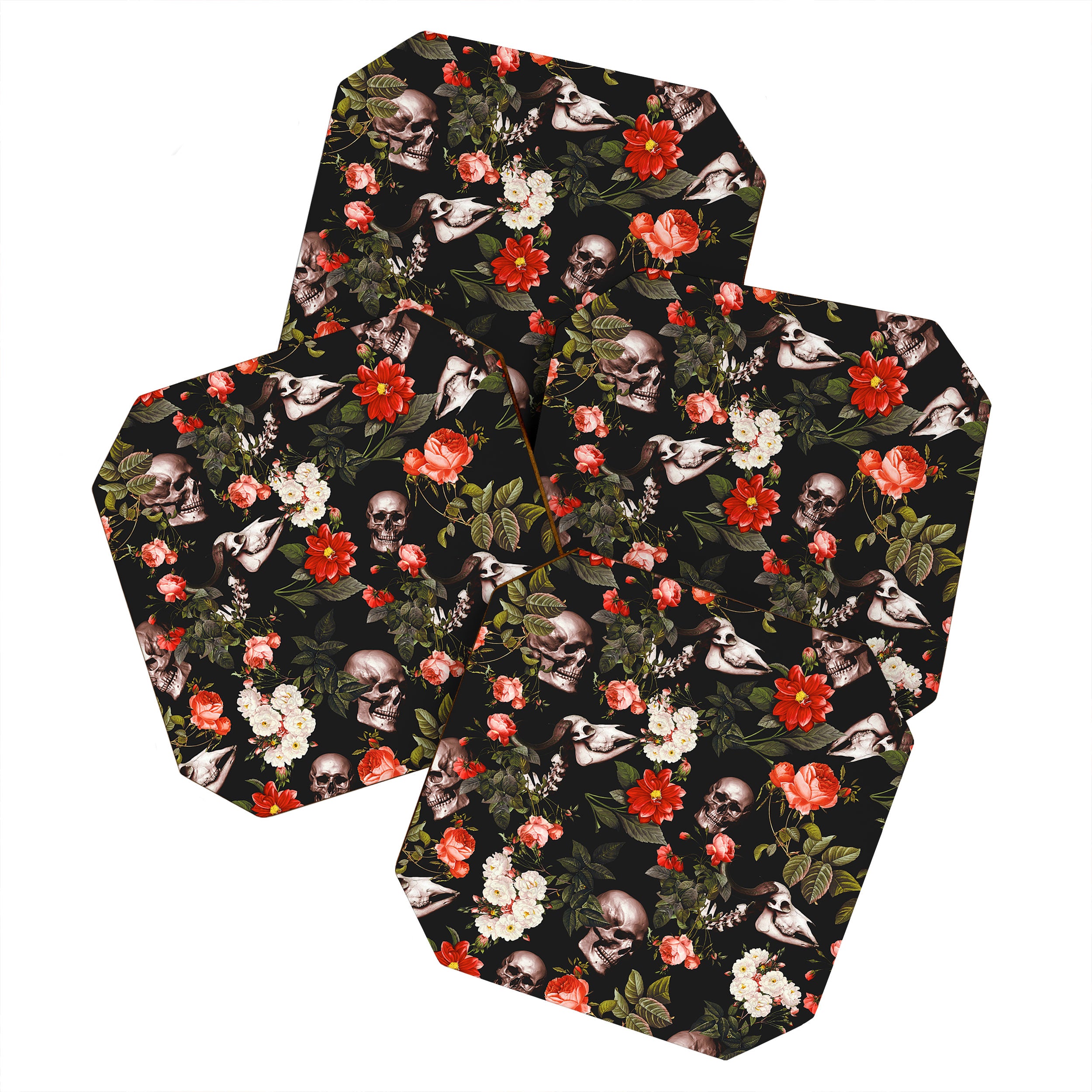 Burcu Korkmazyurek Floral and Skull Pattern Coaster Set