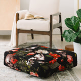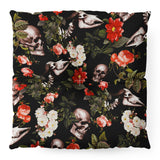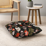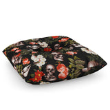 Burcu Korkmazyurek Floral and Skull Pattern Floor Pillow Square