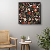 Burcu Korkmazyurek Floral and Skull Pattern Framed Wall Art