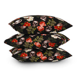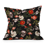 Burcu Korkmazyurek Floral and Skull Pattern Throw Pillow