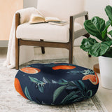 Burcu Korkmazyurek Lemon and Leaf Pattern VI Floor Pillow Round