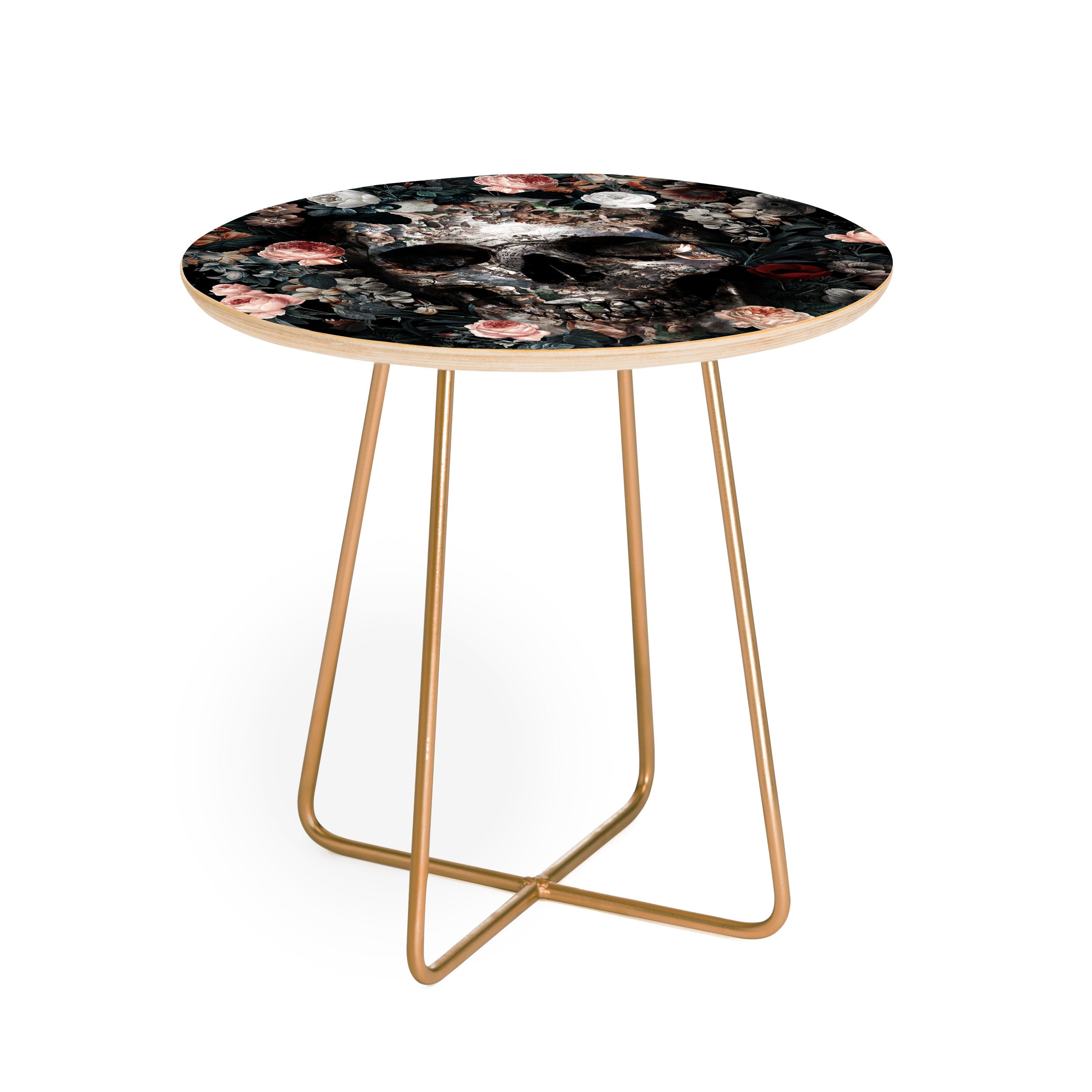 Burcu Korkmazyurek Skull and Floral Pattern Round Side Table