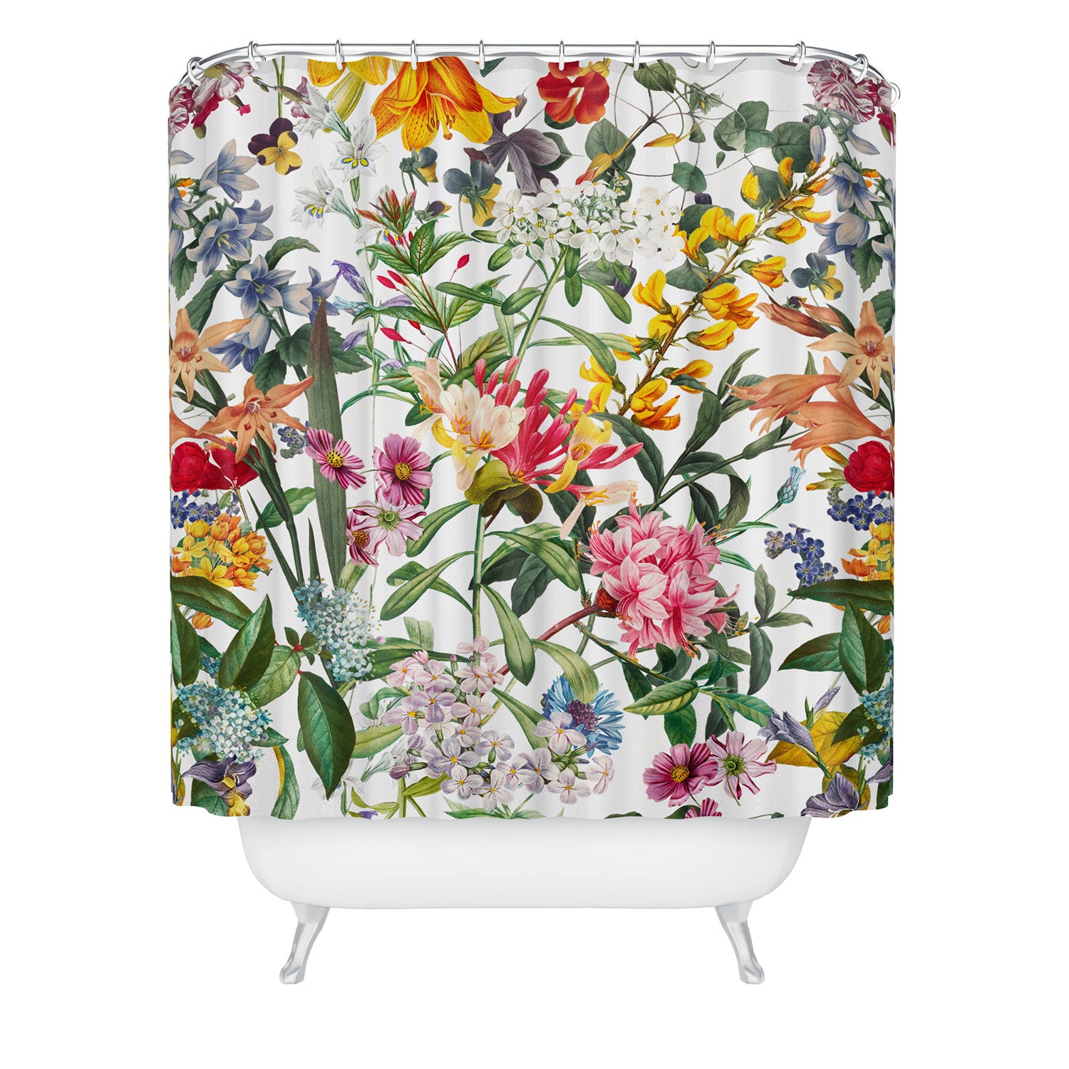 Set the stage. The Deny Designs shower curtain is crafted from 100% woven polyester and makes the perfect backdrop for whatever your bathroom decor may be. Adding some design to your shower curtains is a great way to make a statement in a room known for presenting plenty of design challenges. The buttonhole openings along the top means that you're free to use any curtain rings or hooks you please. And the best part? Every purchase pays the artist who designed it—supporting creativity worldwide.